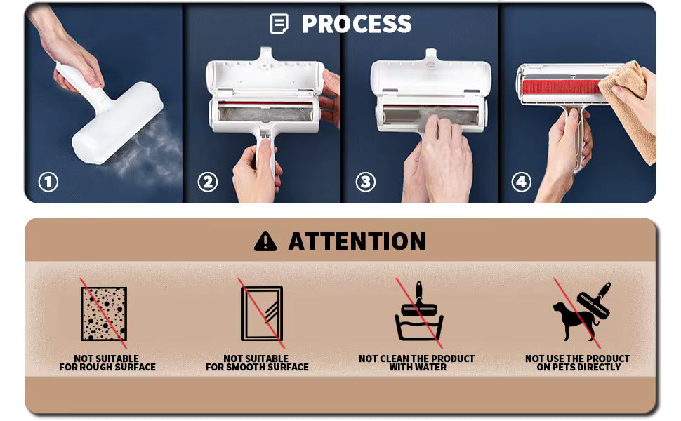 EASY TO CLEAN - Upon picking up loose pet hair, simply press down on the release button to open and empty out the fur remover's waste compartment.
